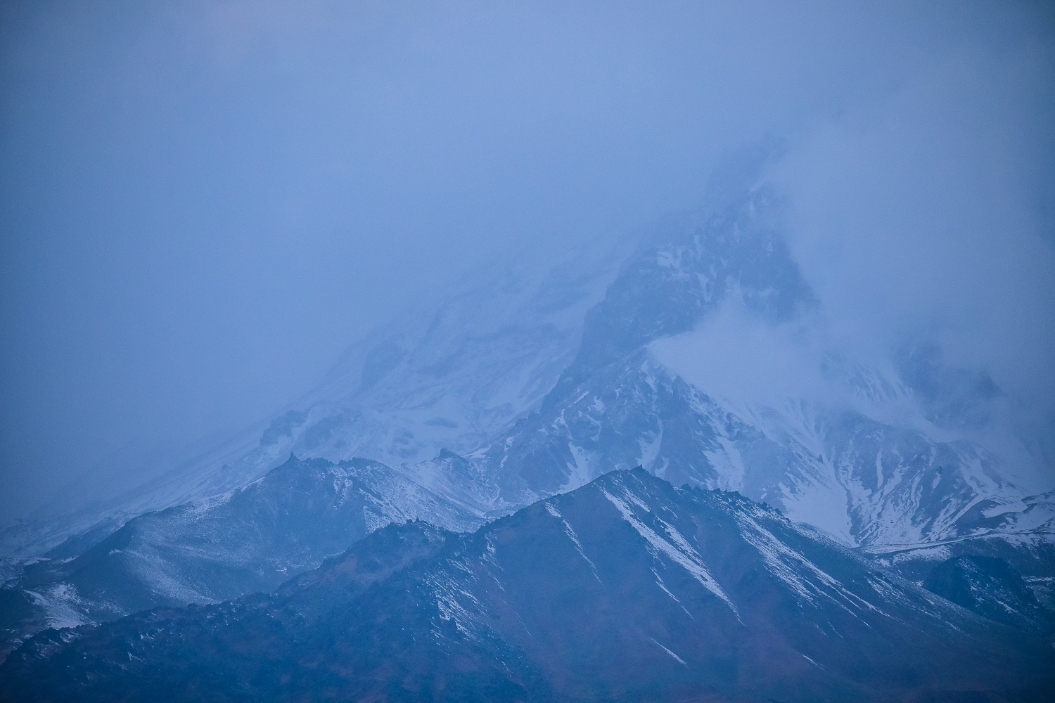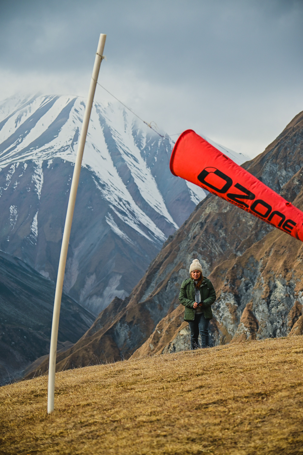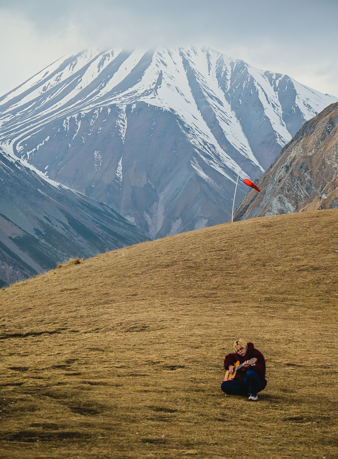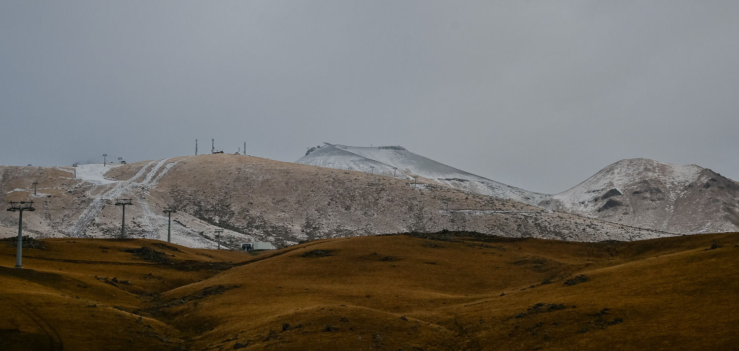 There was a light dusting of snow after the night’s fall early on, but by mid-morning it had started to melt on the lower peaks. The higher mountains were blanketed, however, so we ventured back to the Gudauri lookout, which wasn’t packed with selfie seekers, for some more shots of the valley and Caucasus. We were met at the Mount Sherkhota lookout by the resident dog, which looked more like a polar bear in this weather, and was happy for the company.