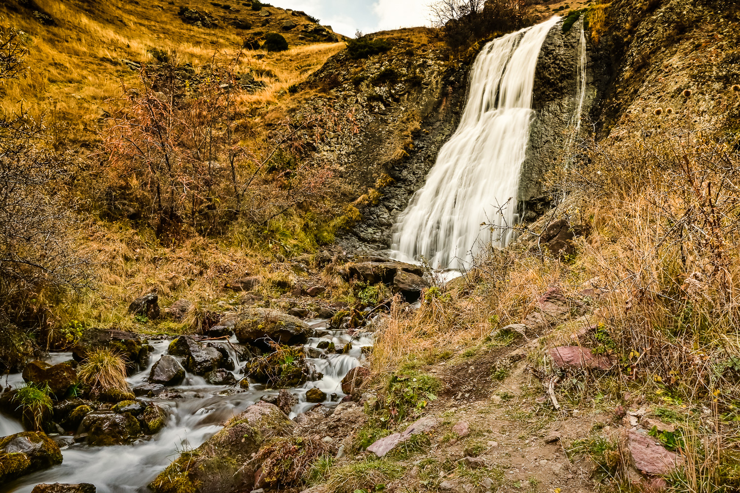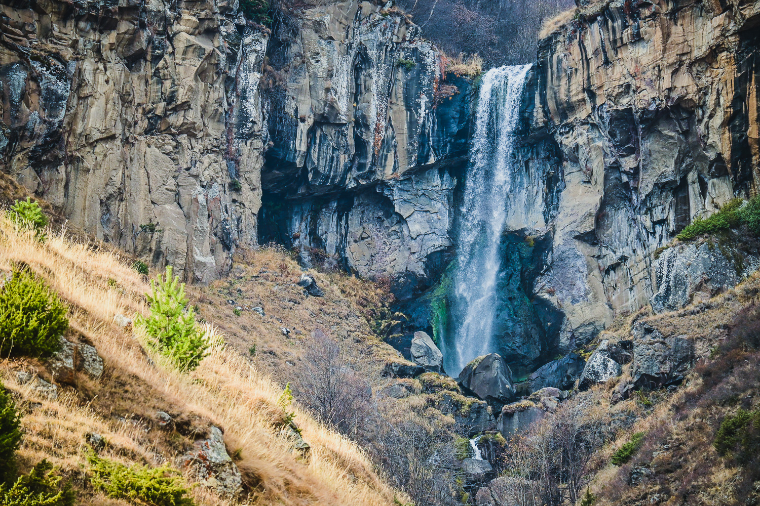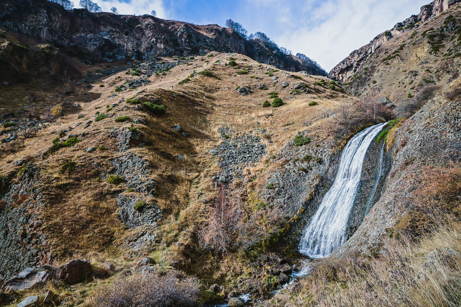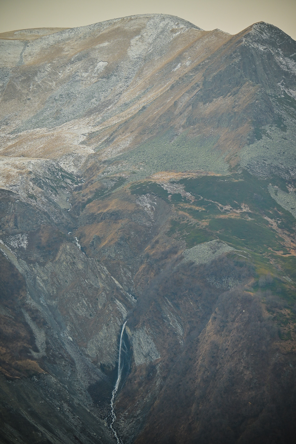 It was a short drive to our next stop at the popular ski destination of Gudauri, so we stopped off for a quick hike to Arsha waterfall. From there, it was back down the E117 to the Kobi gondola (cable car) … which was not running.