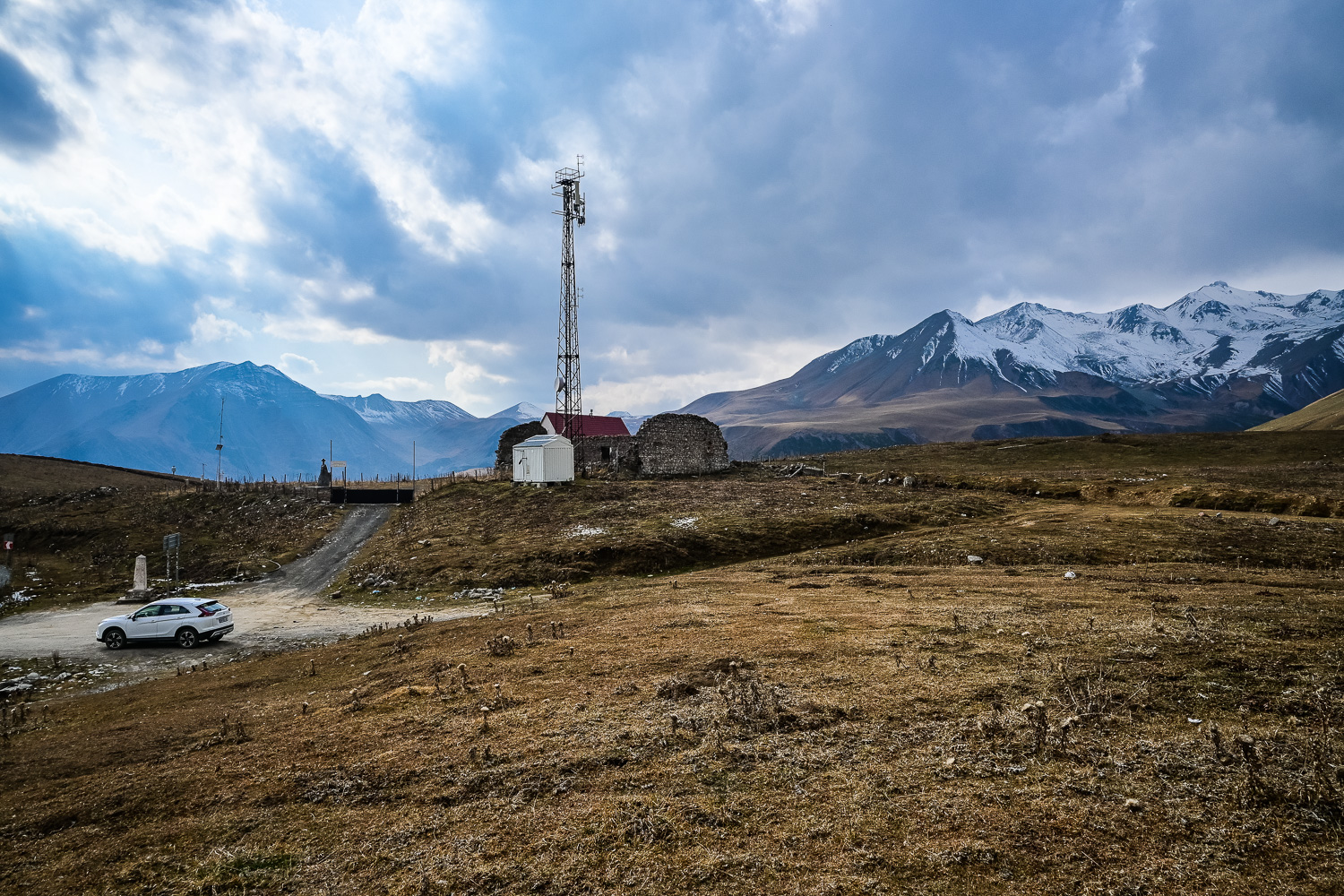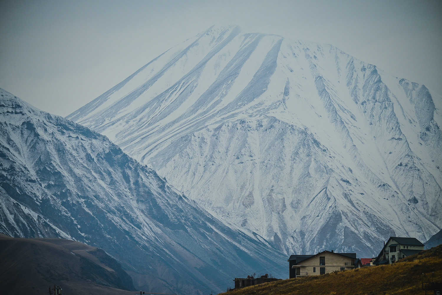 We also stopped at the Jvari Pass, the highest point on the mountain road at around 2,400 meters and an epic viewpoint to Georgia’s highest mountain, Mount Sherkhota, at over 5,600 meters elevation, before rolling into the ghost town of Gudauri.