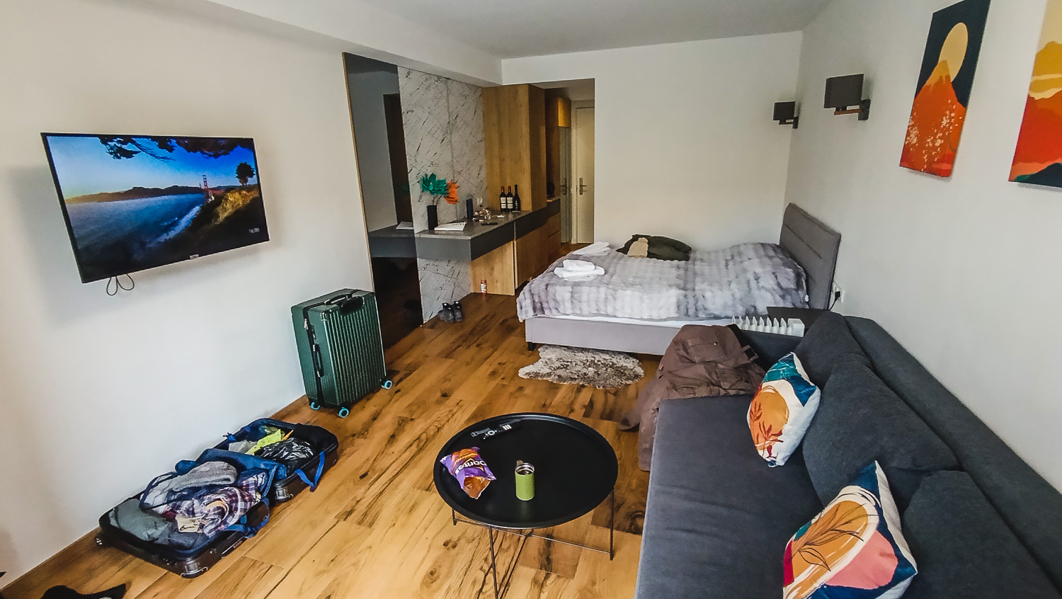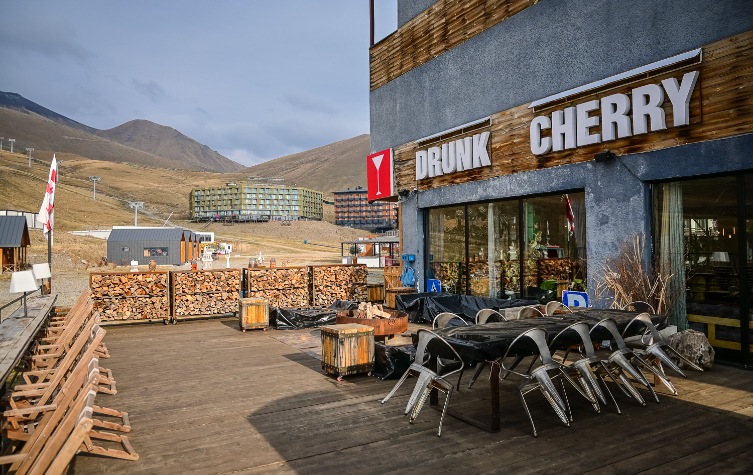 Snow season doesn’t start until December, so the entire place, which is 90% apartment blocks, was deserted and populated by construction workers building more apartment blocks. Our building had no reception or visible occupants (despite Agoda insisting it was full), so it was a bit of a shitfight finding someone to verify our booking and eventually give us a key.