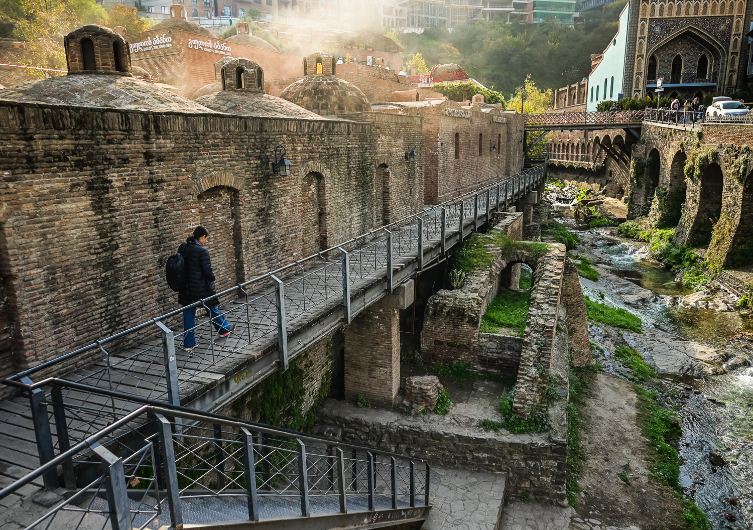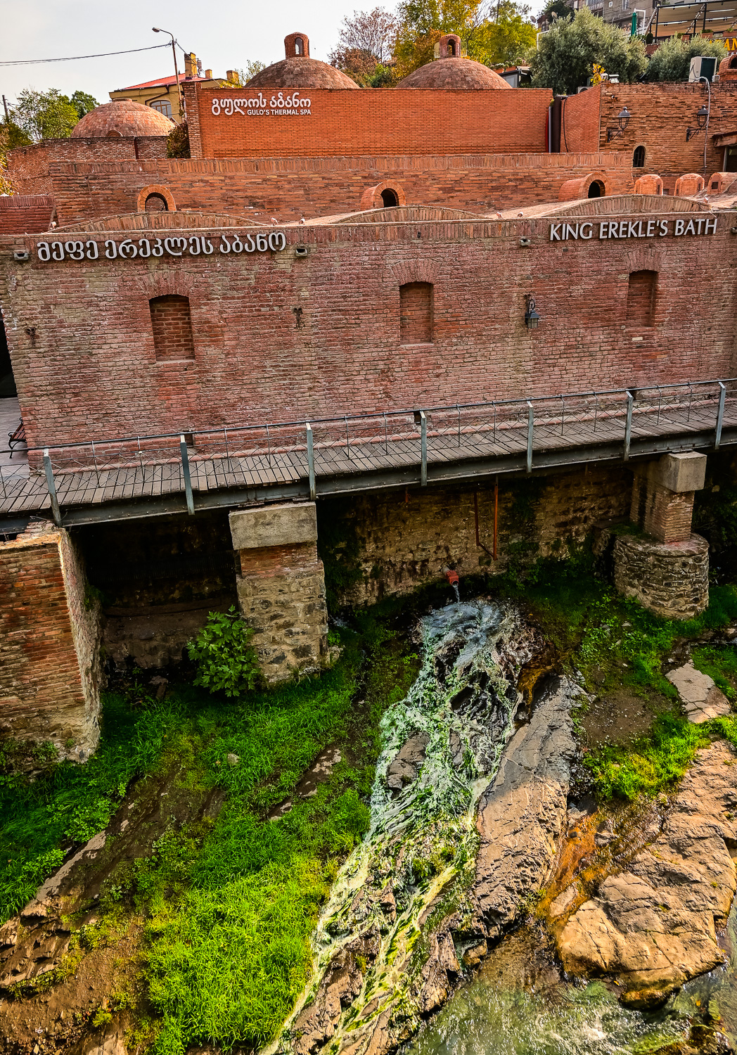 We walked through the old town to the Abanotubani area, which is famous for its sulfur baths. I was also unaware that there was a waterfall right in the city feeding the baths from the very picturesque Leghvtakhevi Canyon.