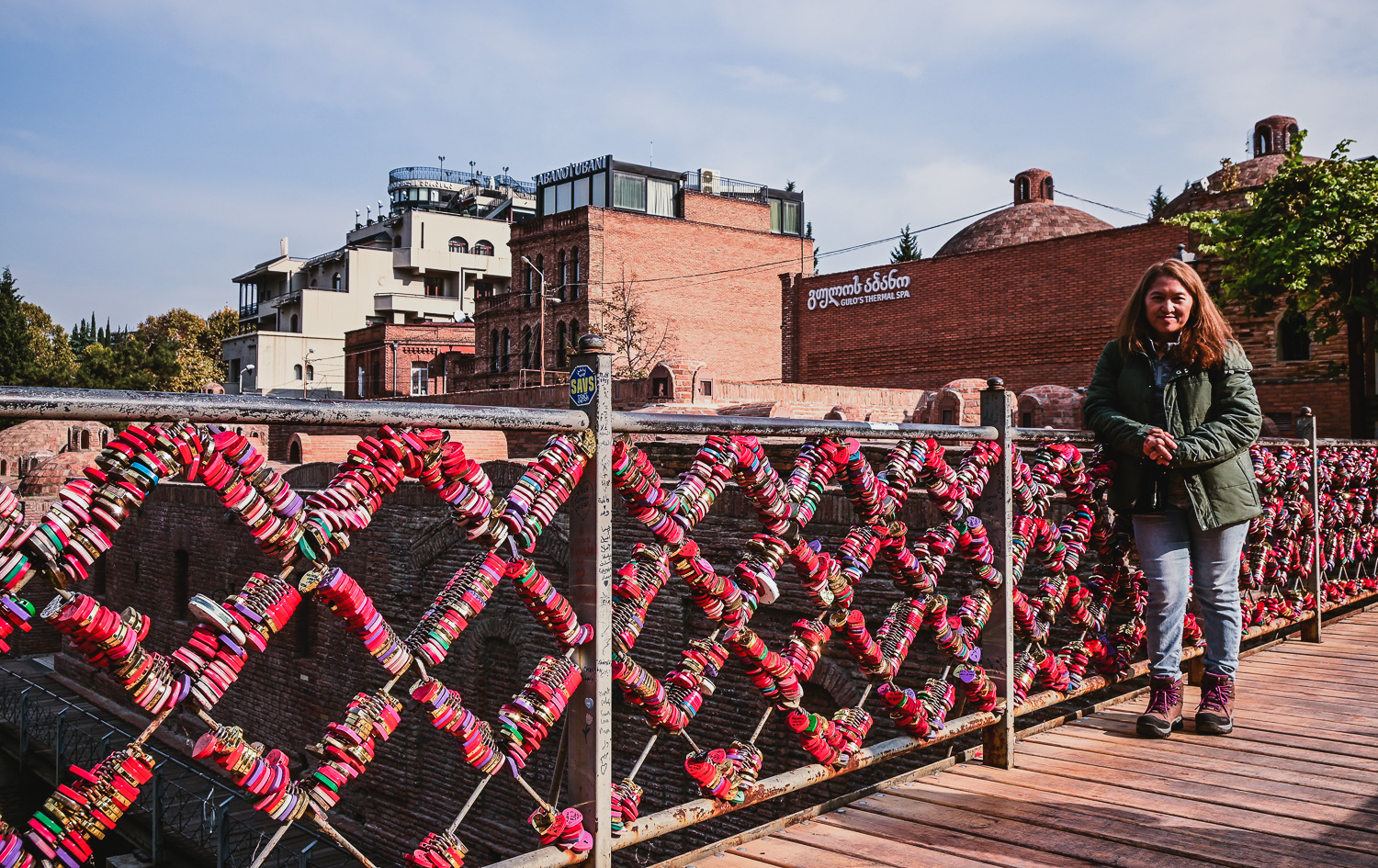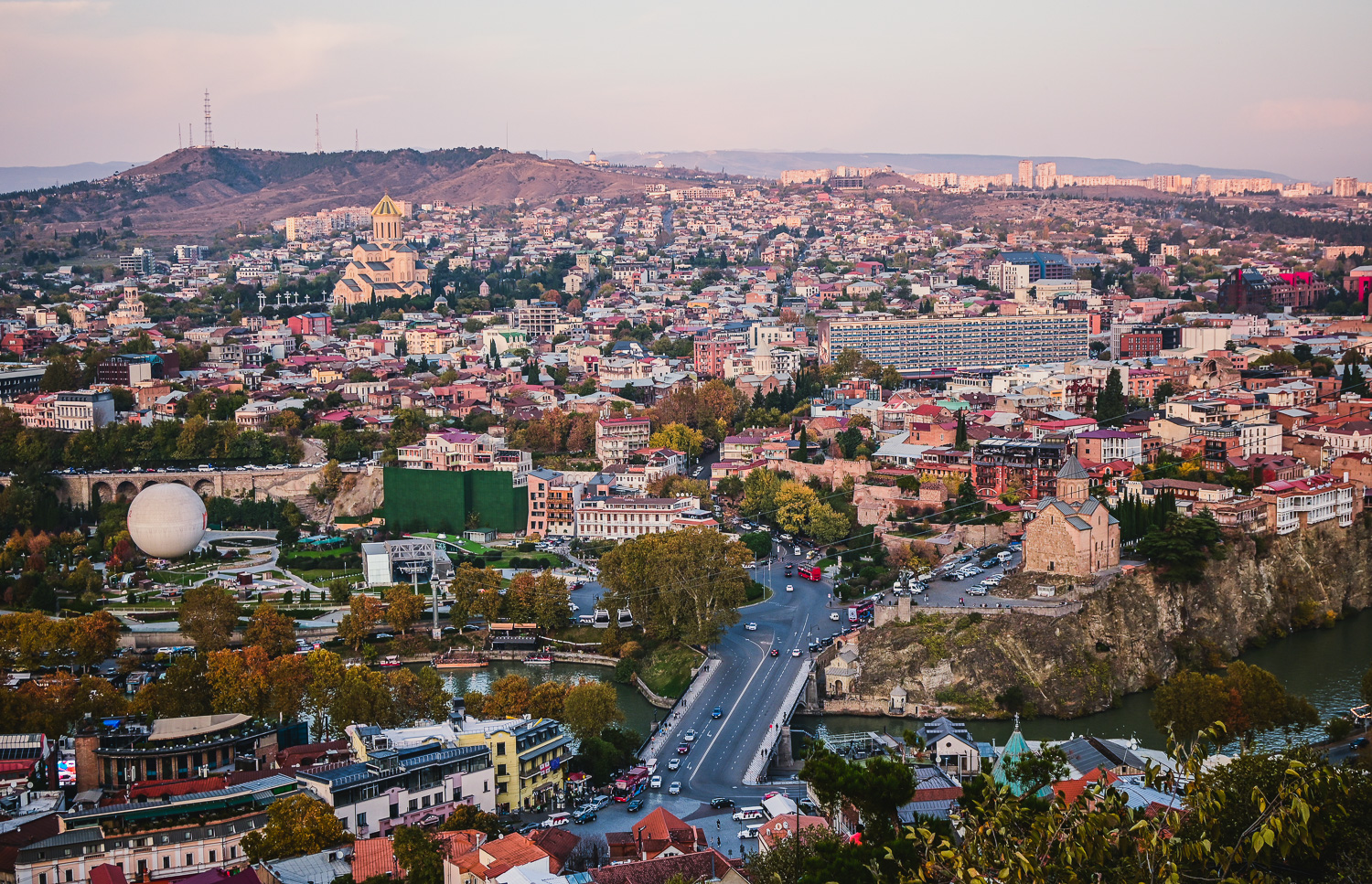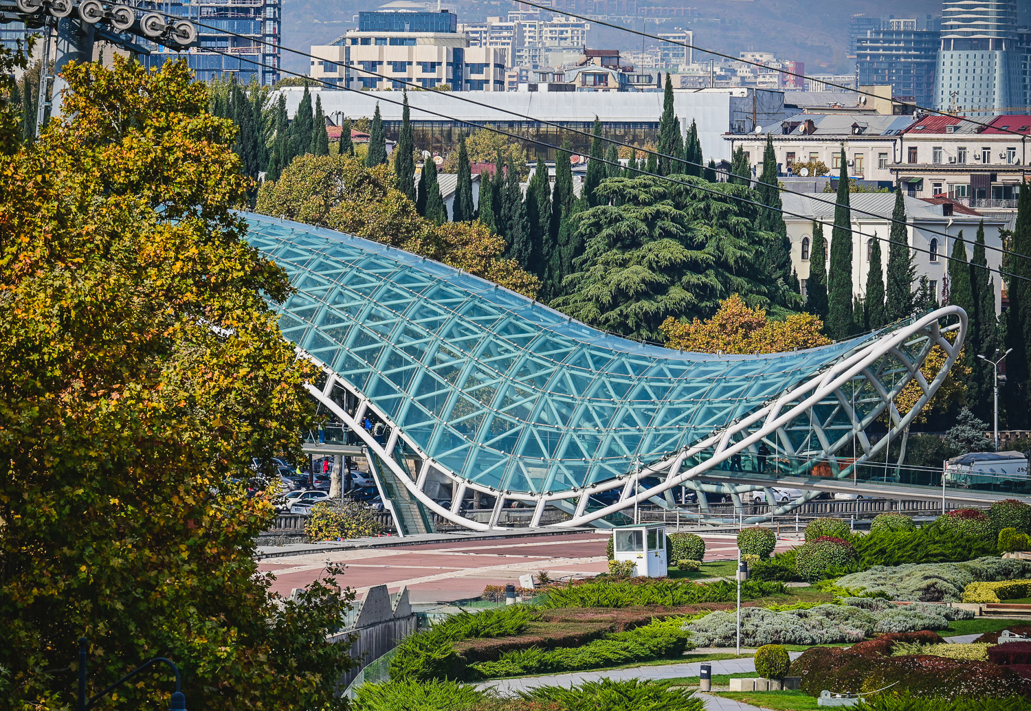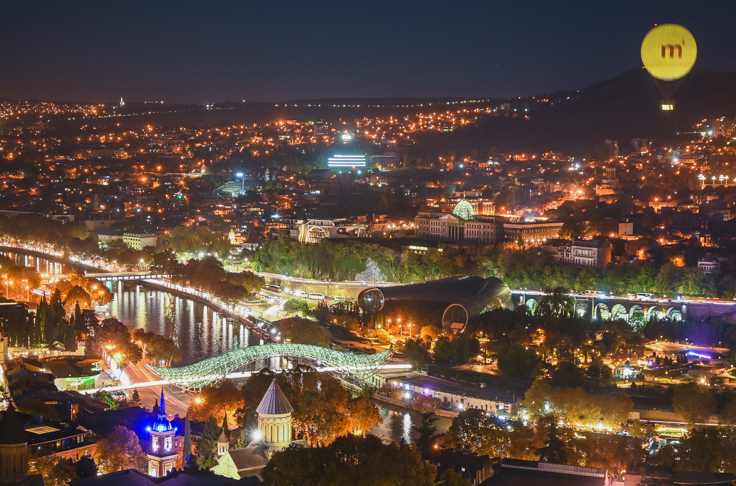 It was time for a rest and a vino on the balcony before we headed out again in the late afternoon, walking across the pedestrian Bridge of Peace over to the ropeway (cable car) to take us up to the Mother of Georgia for a dollar at sunset.