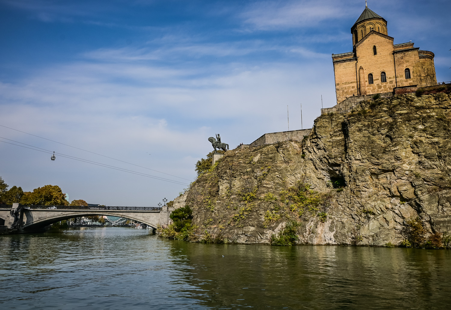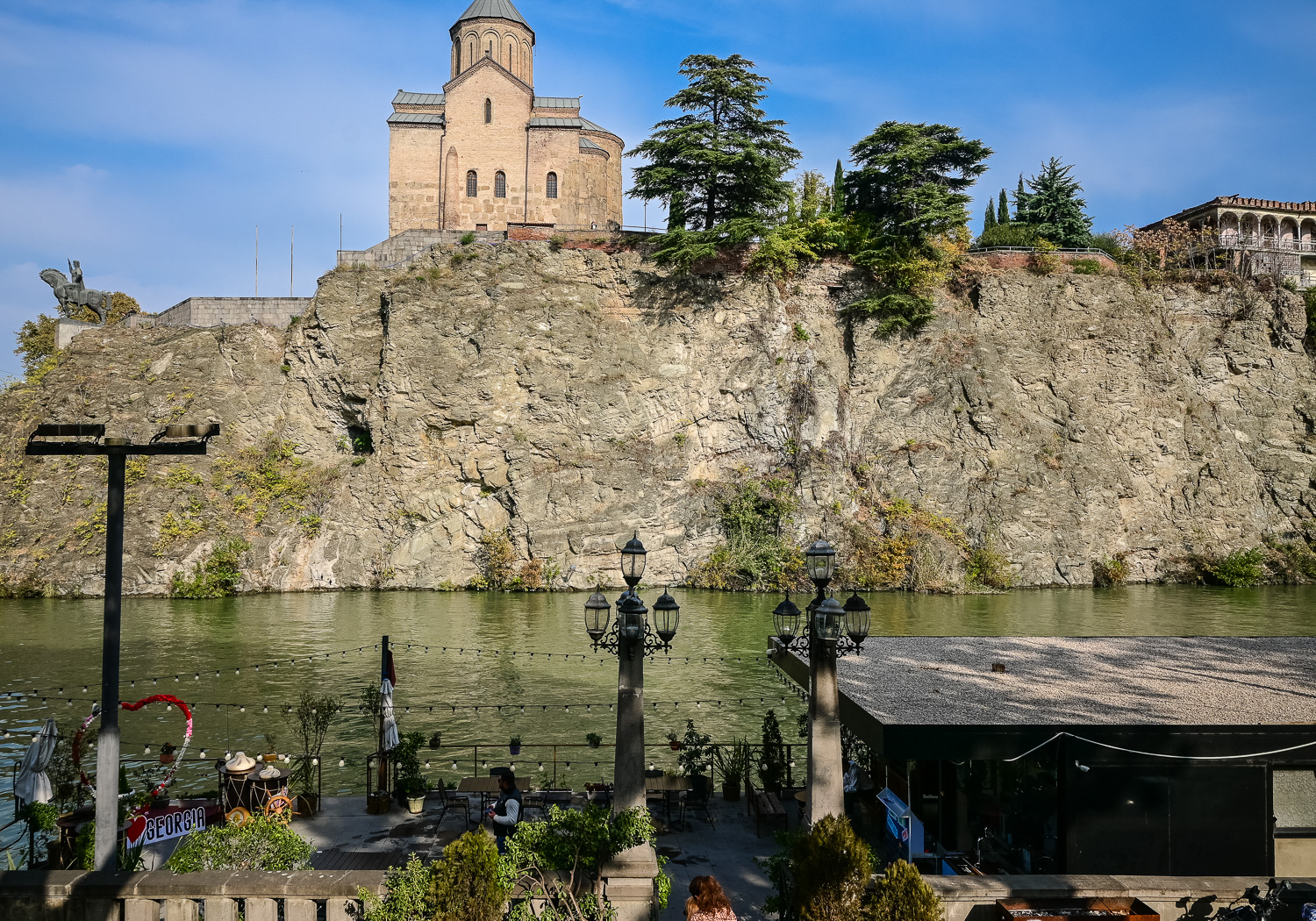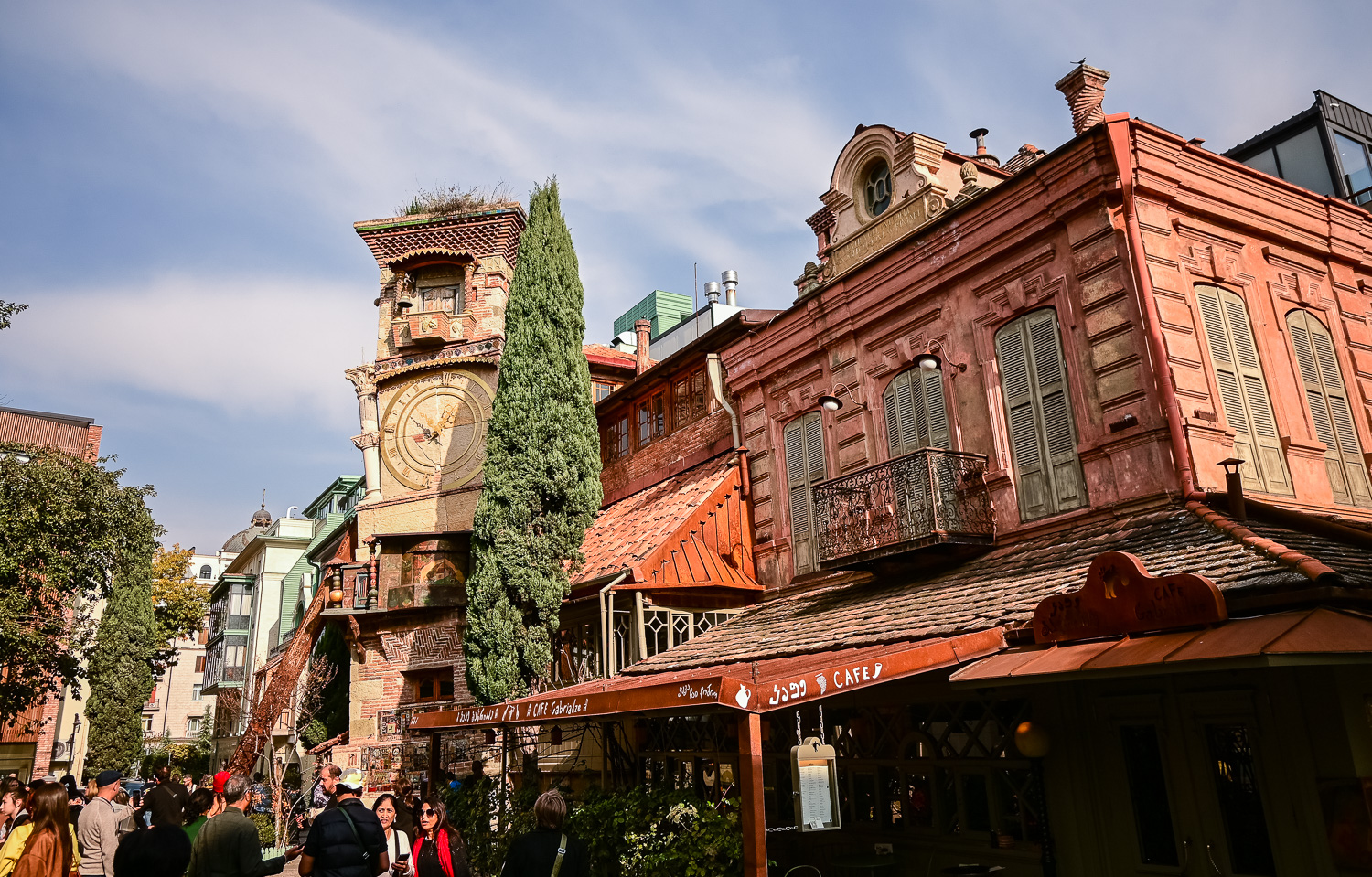 From here, it was along the river and across to Metekhi Church, which resembled a medieval castle. We crossed back into the old town and through the very touristy restaurant district with its overpriced menus on offer and up to the famous crooked clock tower, which was swarmed with selfie-seeking tourists. I have come to the conclusion that Gen-Z are ignoramuses who can’t see beyond the end of their phones and have zero concept or regard for the people around them.