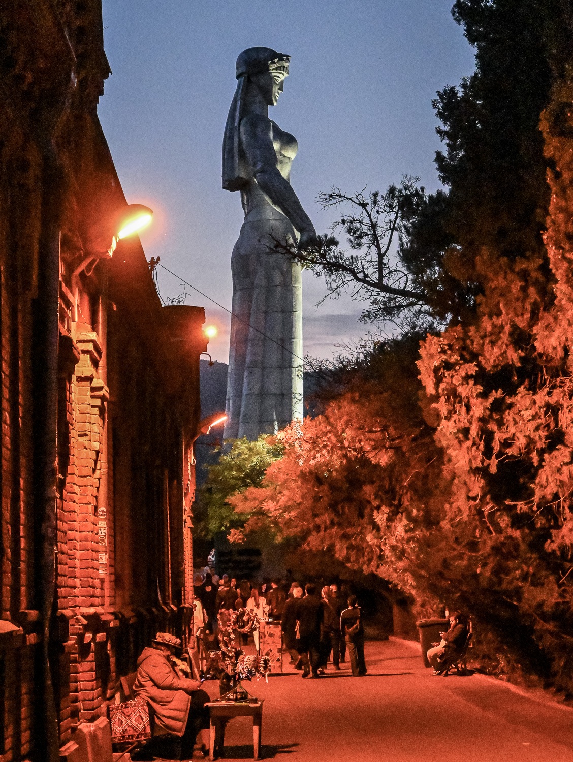 This large and iconic female aluminum figure was erected in 1958 and looks over the city of Tbilisi. Naturally, it was very crowded as the sun dropped and the city lights winked on. We took it easy, had a beer and watched the crowds ebb and flow.