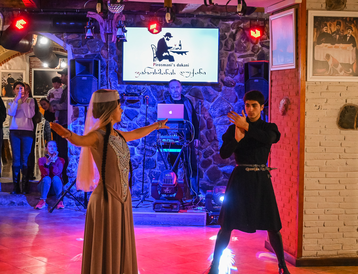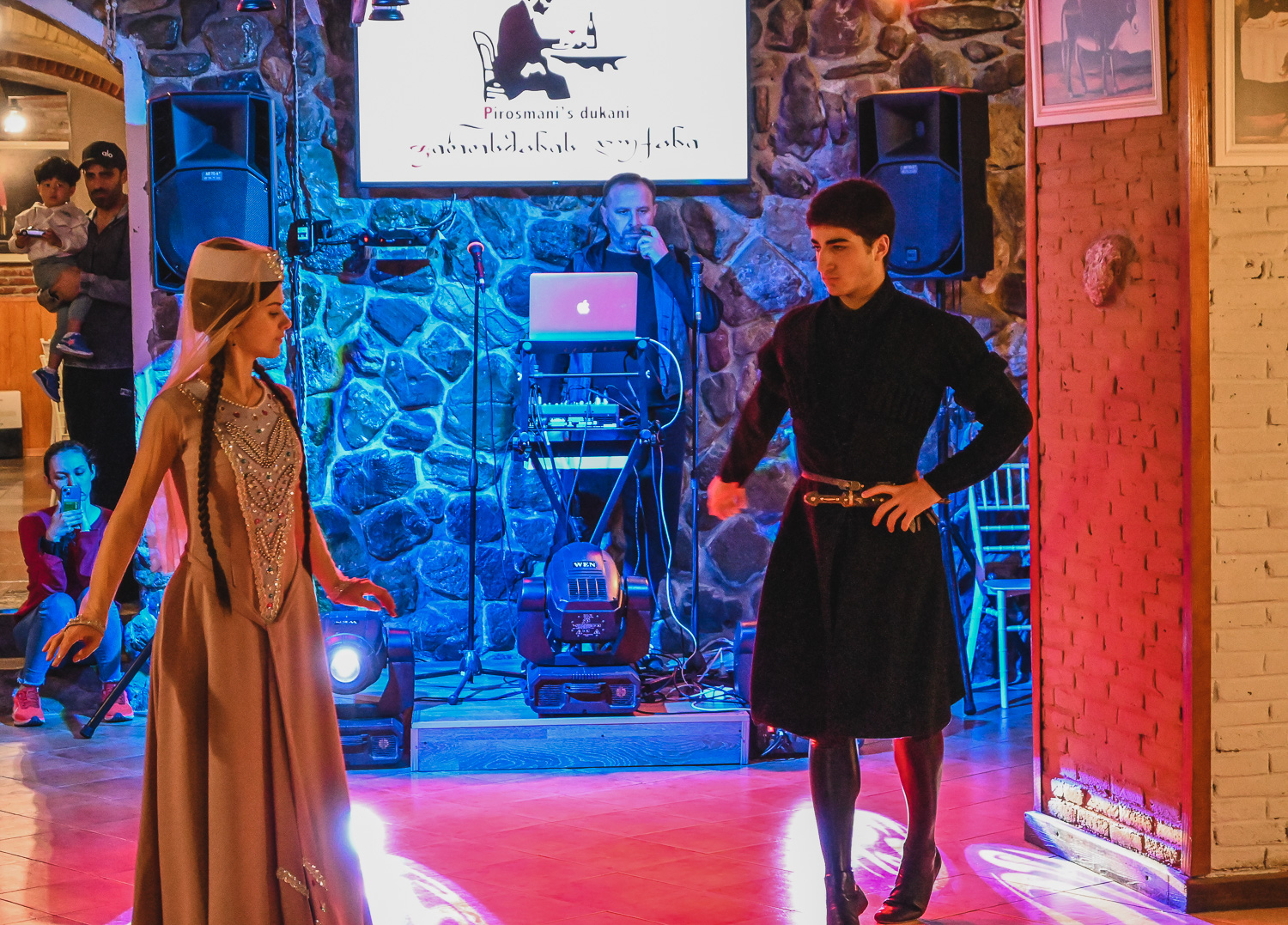 It was time for dinner, so we found a local restaurant with Georgian food, music, and dancing called Pirosmani’s Dukani. Eating out in Georgia is much cheaper than in Türkiye, but we realized we were still paying tourist prices.